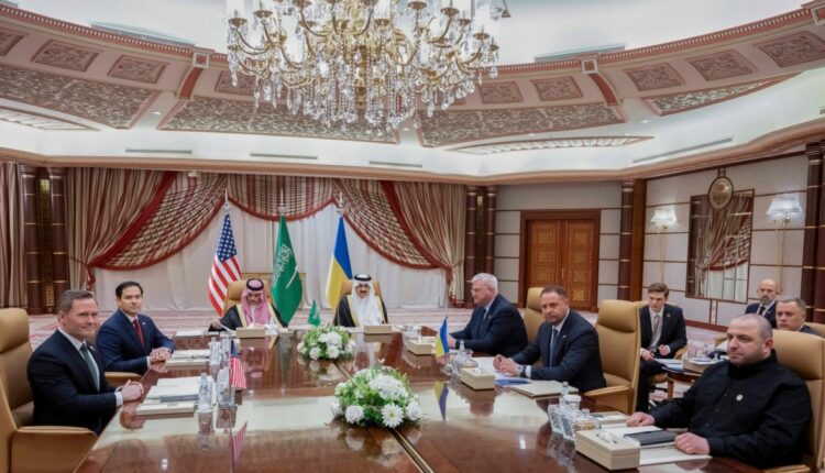 11 березня в Саудівській Аравії відбулася зустріч делегацій України та Сполучених Штатів. Українську сторону представляли керівник Офісу президента Андрій Єрмак, міністр закордонних справ Андрій Сибіга, міністр оборони Рустем Умеров і заступник керівника ОП Павло Паліса. З американської сторони були присутні держсекретар Марко Рубіо, радник президента з національної безпеки Майкл Волц і спецпредставник Президента США у справах Близького Сходу Стівен Віткофф.